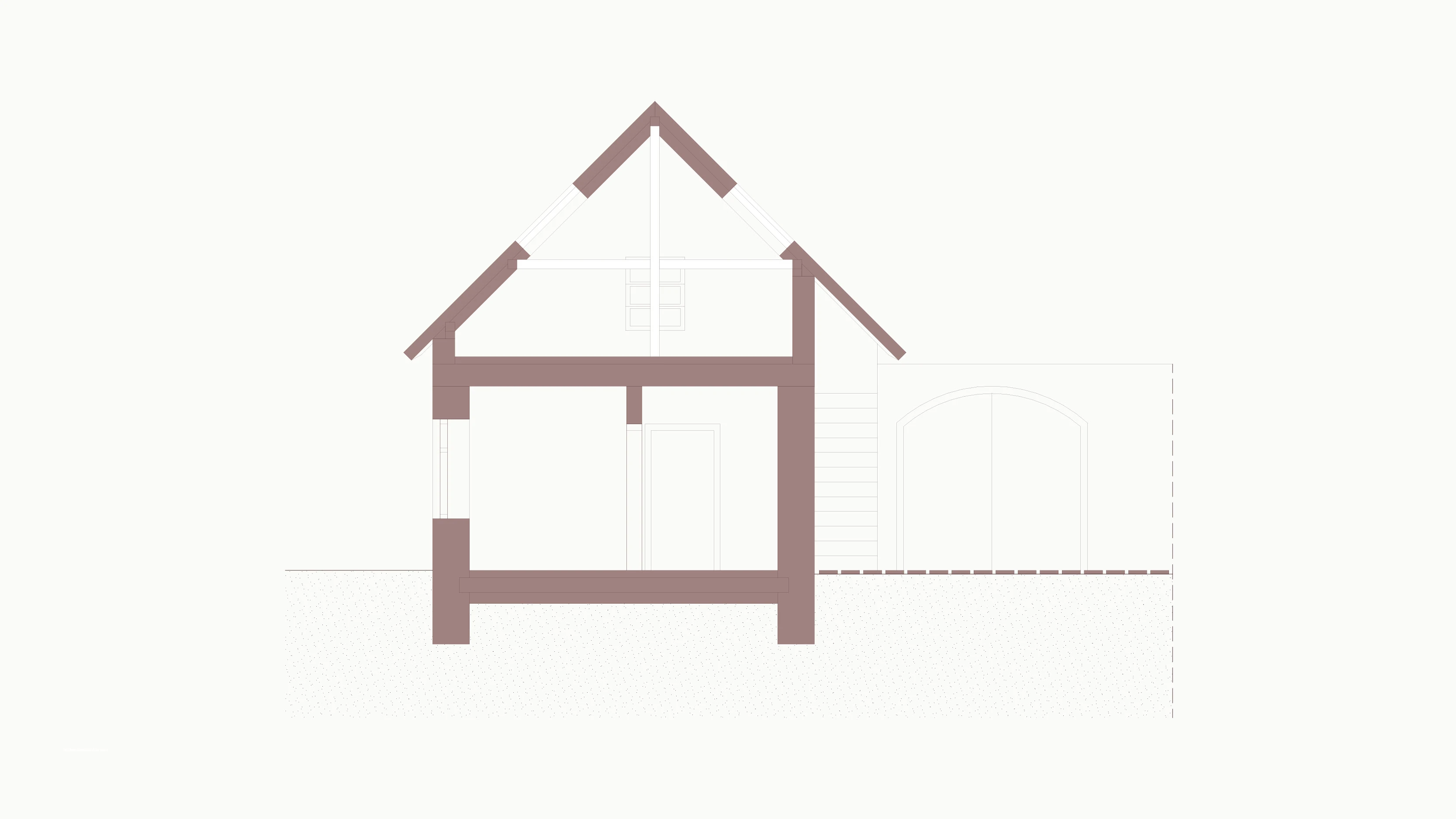 Im Rahmen der Kernsanierung des Bauernhofs G bleibt die bestehende Struktur und Raumkonfiguration des Wohntrakts erhalten und wird behutsam um ein Bad und eine Küche ergänzt. Im ehemaligen Rinderstall entsteht eine kleine Einliegerwohnung für Gäste, die durch einen separaten Zugang von außen erschlossen wird. Der darüberliegende Dachboden, der früher zur Heulagerung diente, wird als Schlafgalerie umfunktioniert. Der Dachboden über dem Wohntrakt bleibt vom Innenhof aus zugänglich, um die bestehende Gebäudestruktur zu bewahren. Mit dem Einbau einer Küche und eines Bads bietet er flexible Nutzungsmöglichkeiten, die sich an zukünftige Bedürfnisse anpassen lassen. Neue Dachflächenfenster sorgen für mehr Tageslicht.